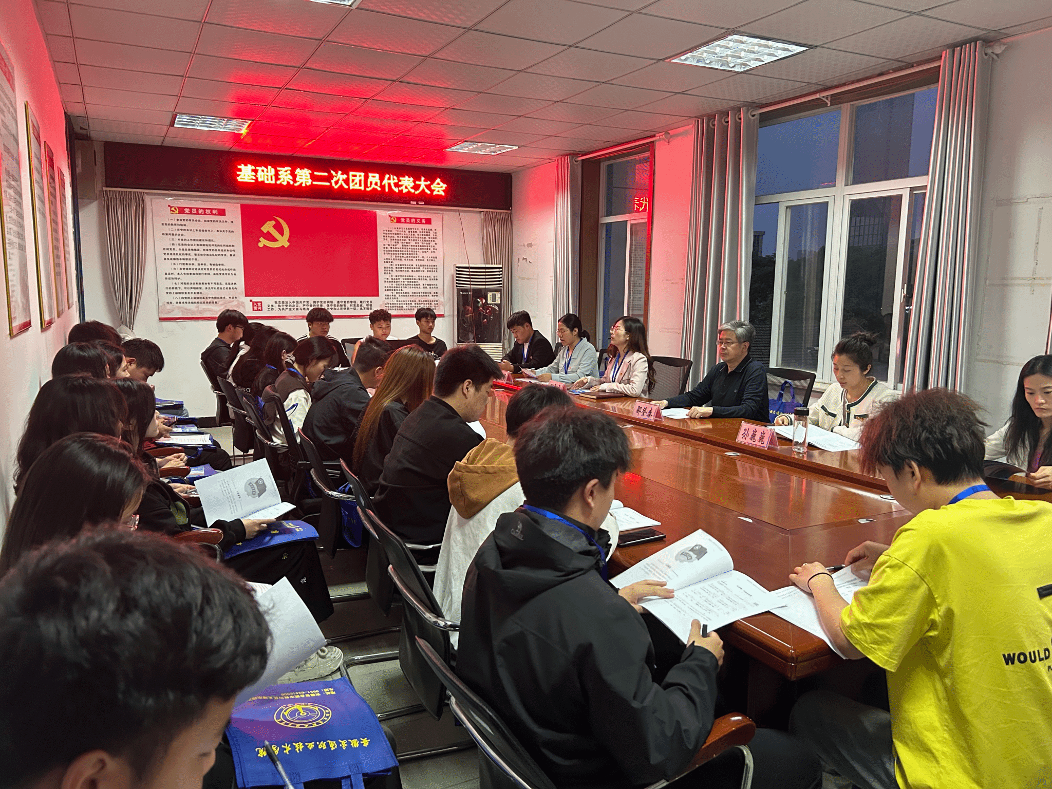 4月29日,基礎系第二次團員代表大會在南區教學樓會議室勝利召開。基礎系黨總支書記邵登泰、系黨總支副書記孫巍巍、學生管理老師出席會議。系團員正式代表共計26人參會。