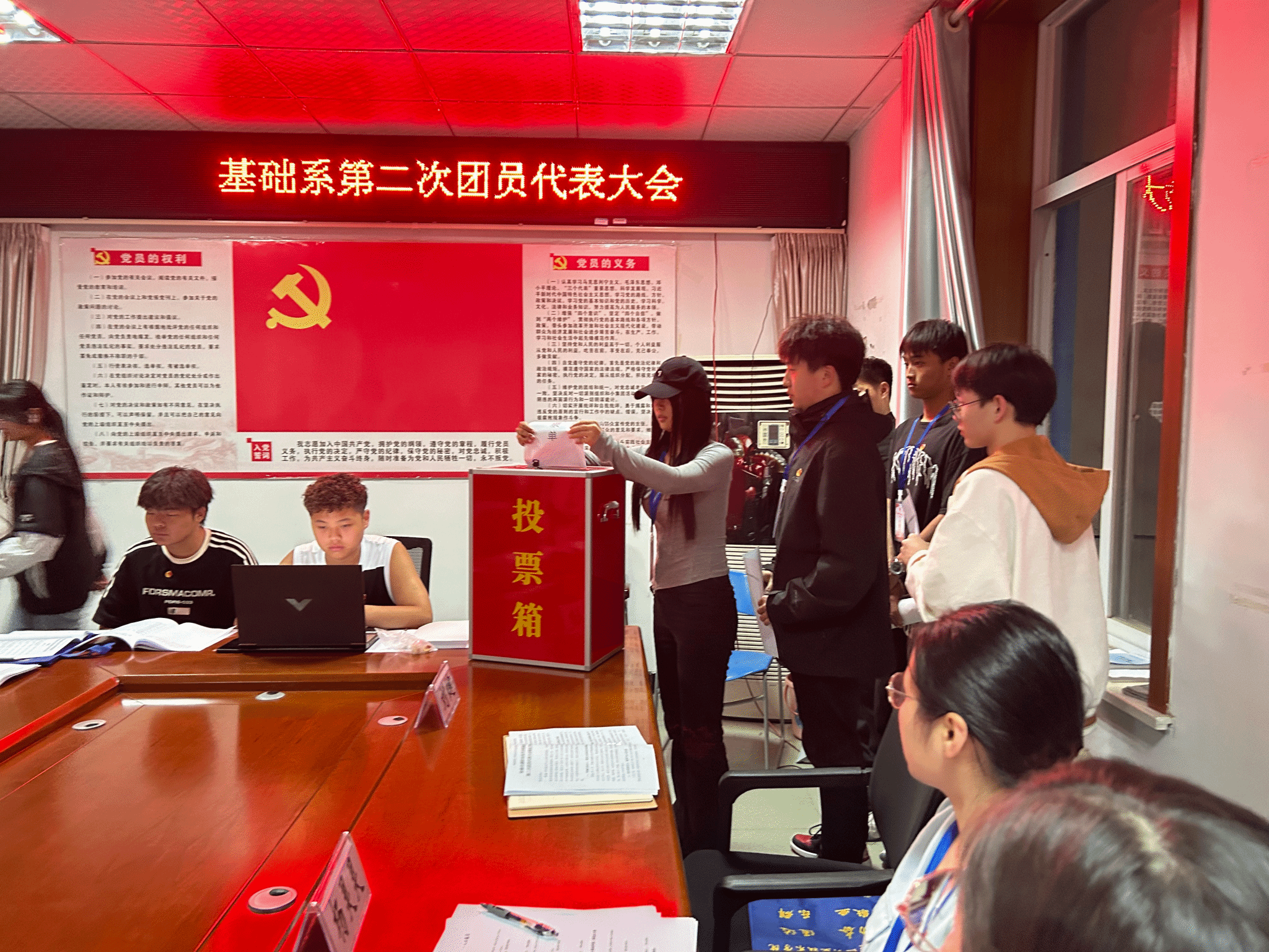 正式會議上,團代表們聽取并表決通過了基礎系第一屆團總支部委員會工作報告《青春建功心向黨 踔厲奮發向未來》,通過無記名投票方式,實行差額選舉,最終選出了新一屆團總支部委員會。最后,在激昂嘹亮的團歌聲中,基礎系第二次團員代表大會勝利閉幕。