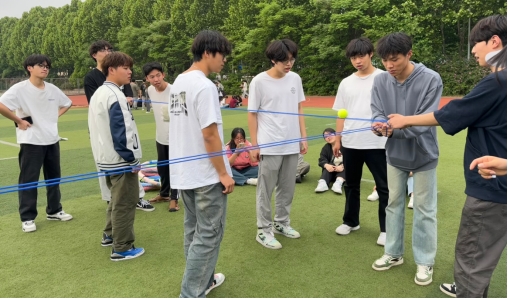 本次活動在春日暖陽下拉開序幕。在經(jīng)過熱身小游戲后,又開展了“一圈到底”“軌道傳球”“珠行萬里”等一系列生動又有趣的活動。在各項目負(fù)責(zé)人的帶領(lǐng)下,每一位同學(xué)都熱情參與、團(tuán)結(jié)協(xié)作、克服困難、揮灑汗水,操場上回蕩著歡聲笑語,現(xiàn)場氣氛達(dá)到高潮。