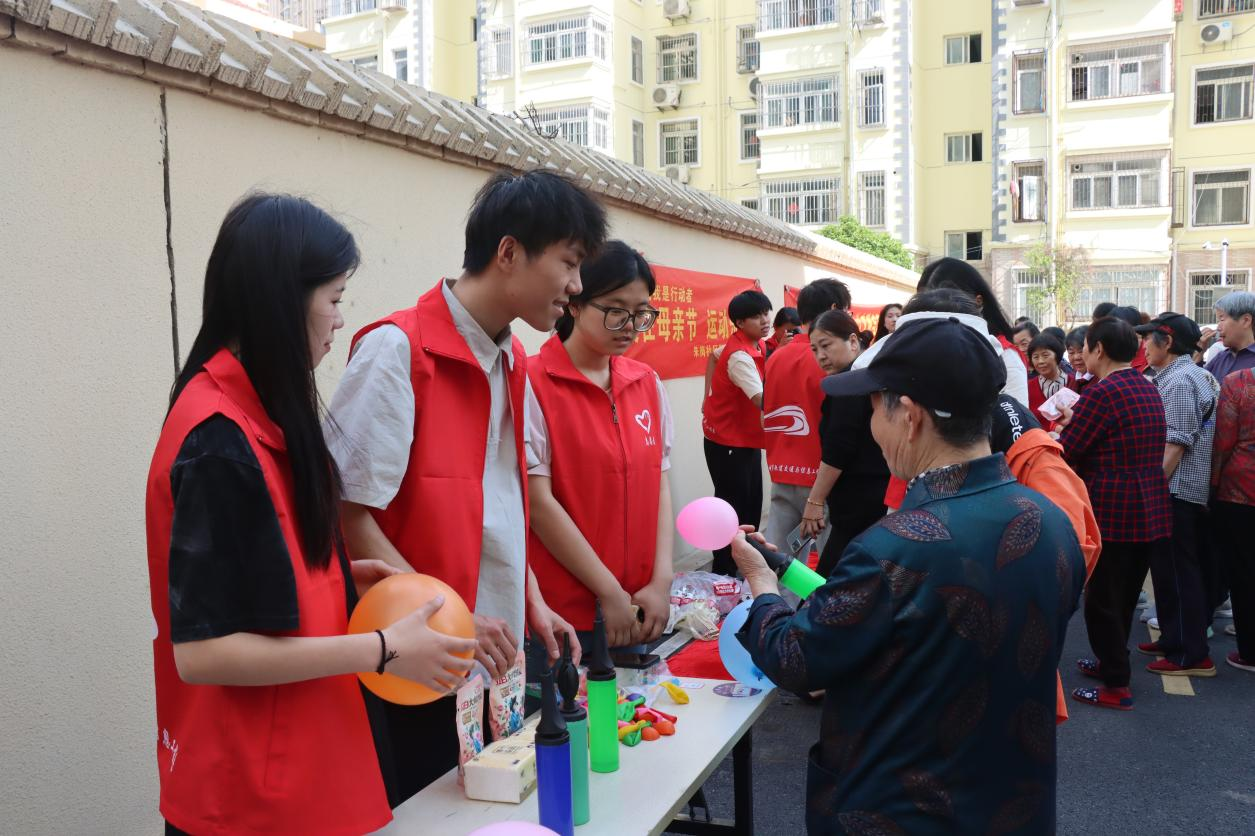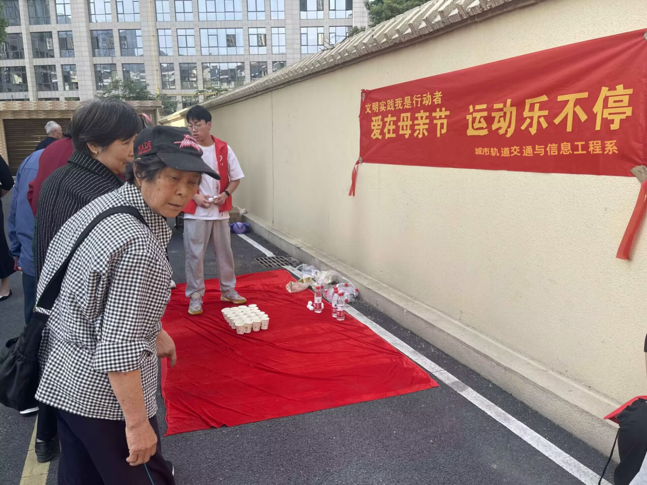 活動伊始,城信系的學生志愿者向社區居民介紹了趣味運動的規則,并表達了對母親節的美好祝福。歡樂打氣球大挑戰,套圈等游戲激發了大家的參與熱情,現場氣氛熱鬧溫馨,充滿歡聲笑語。