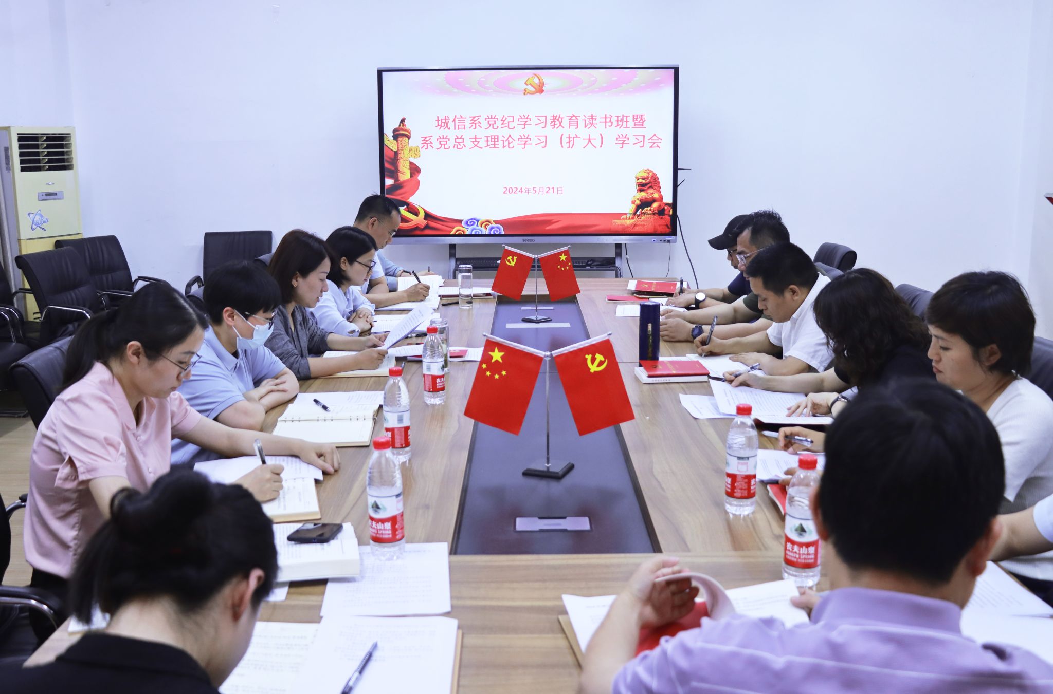 5月21日下午,城信系黨總支書記汪倩主持召開黨紀學習教育讀書班暨系黨總支政治理論(擴大)學習會,系黨總支成員、各支部書記和副科級以上干部參加會議,學院黨紀學習教育專班工作人員列席旁聽指導。