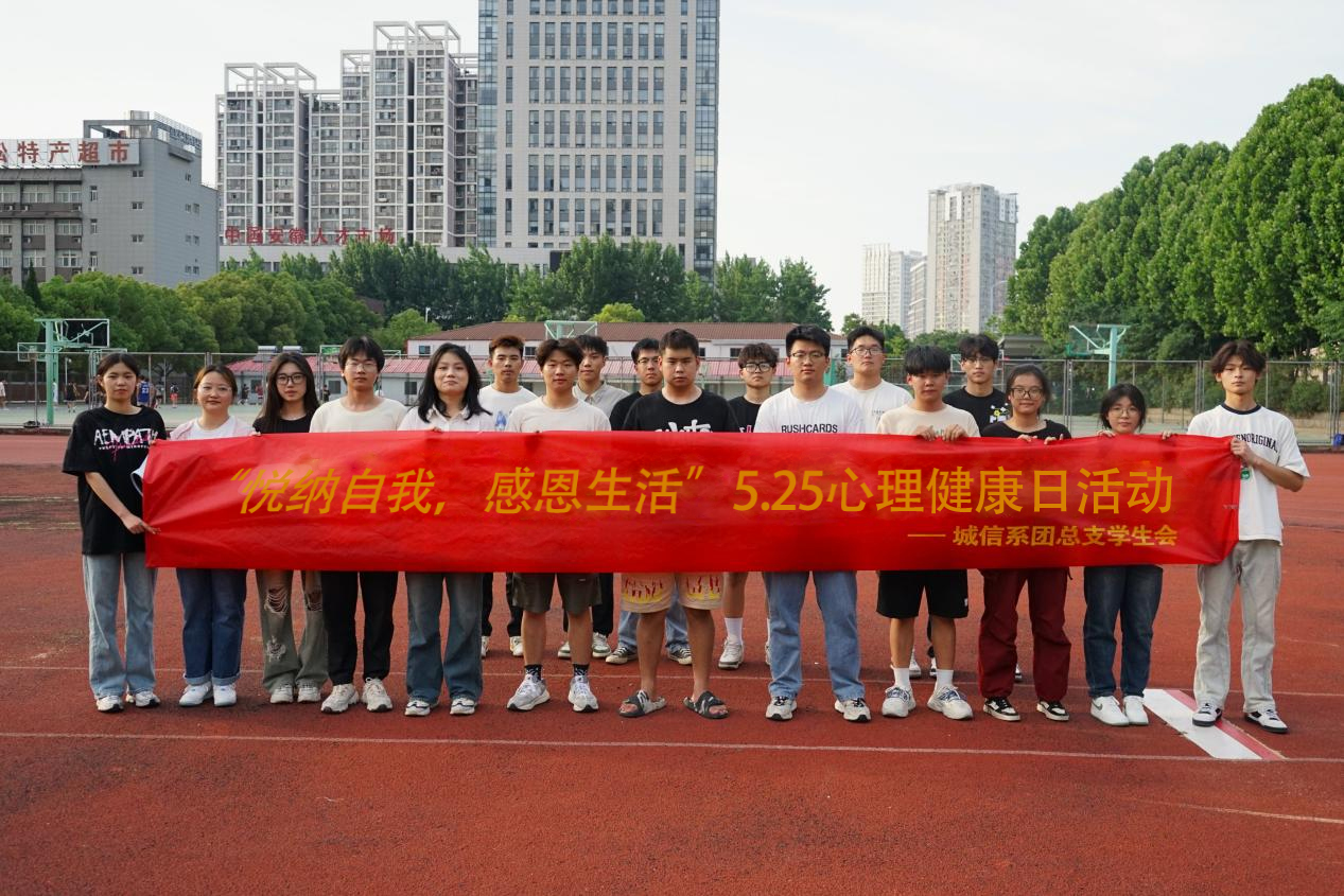 為迎接“5·25”全國大學生心理健康日,擴大對心理健康教育工作的宣傳,在校園中形成良好的心理健康教育氛圍,培養學生自尊自信、理性平和、積極向上的健康心態,緩解期末考試考前焦慮,城信系于5月22日在北區操場舉辦“悅納自我 感恩生活”5.25趣味運動會。