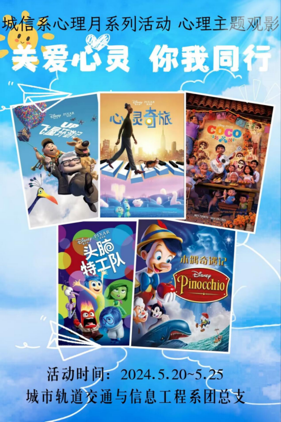 本次觀影活動選擇了《尋夢環(huán)游記》《心靈奇旅》《飛屋環(huán)游記》《頭腦特工隊》《木偶奇遇記》,其中包含了關(guān)于人際交往、自我認知、情感調(diào)適等主題的電影,每部影片都能引發(fā)觀眾的共鳴和思考。活動現(xiàn)場,各班級心理委員向在場學(xué)生講述了心理健康的重要性,普及了心理健康知識,希望同學(xué)們能夠通過此次觀影有所收獲。