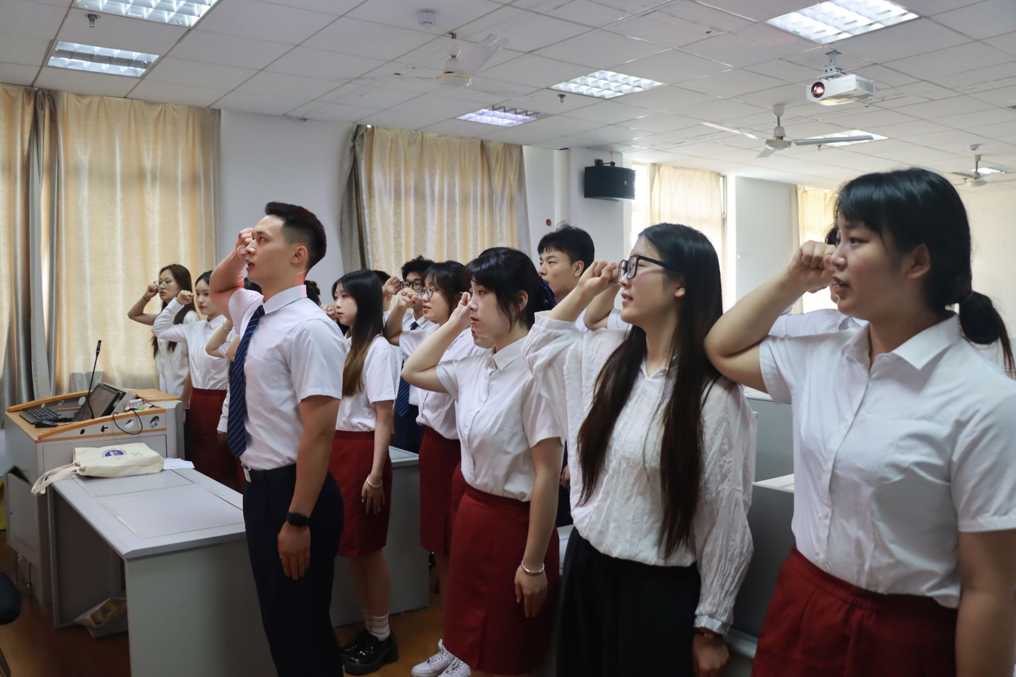 會議結束后,陳珊等17名發展對象面對黨旗進行了莊嚴宣誓,表達了他們堅定永遠跟黨走的決心,不忘初心、牢記使命,積極弘揚偉大建黨精神,繼承和發揚黨的優良傳統,在今后的學習工作中,堅定目標、嚴格要求自己,以自身實際行動積極踐行黨的二十大精神,爭做合格黨員。(城信系 信暢暢)