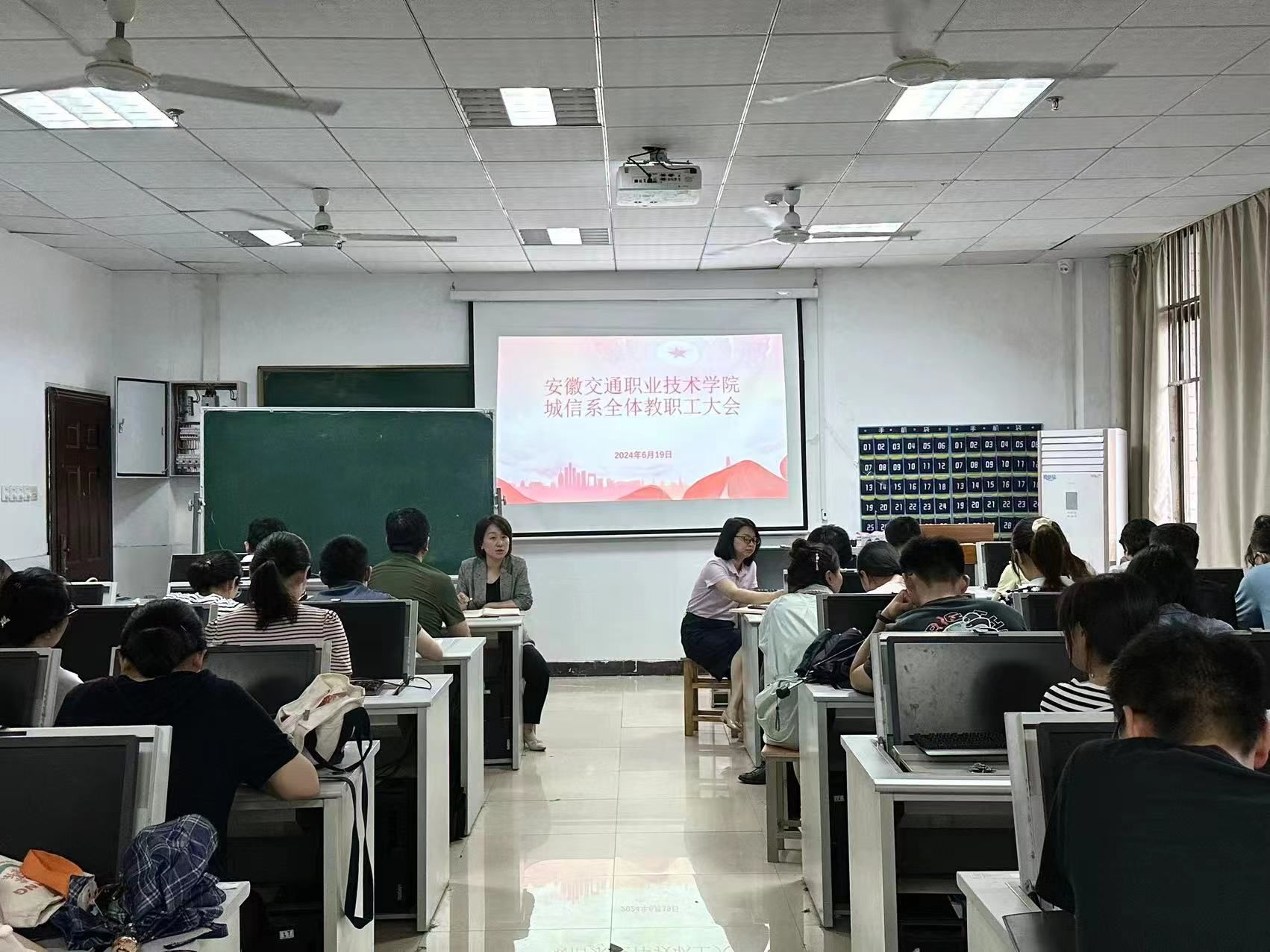 6月19日下午,城信系在信息樓202機房召開全體教職工大會。會議由系黨總支書記汪倩主持,系領導班子和全體教職工參會。