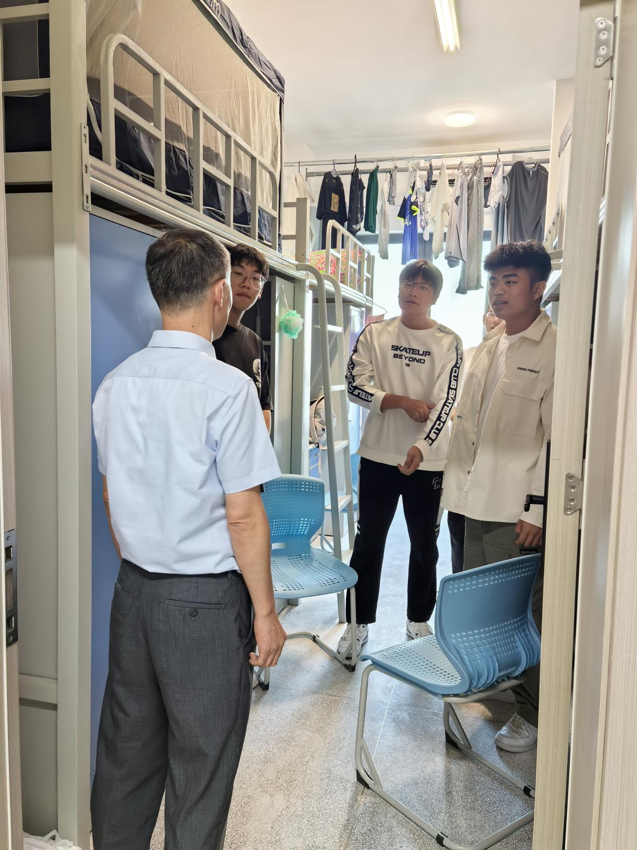 9月23日,院黨委委員、紀委書記季傳友,管理系黨總支書記汪思曼以及新生輔導員來到宿舍,他們鼓勵新生珍惜大學時光,努力學習,注重綜合素質(zhì)提升,并強調(diào)宿舍是生活、學習與交流的重要場所,要注意宿舍安全,遵守學校規(guī)章制度,共同營造一個安全、舒適、和諧的生活環(huán)境。新生們對老師們的關(guān)懷表示衷心感謝,紛紛表示會積極適應(yīng)新環(huán)境,努力學習,不負韶華,為未來的大學生活奠定堅實基礎(chǔ)。