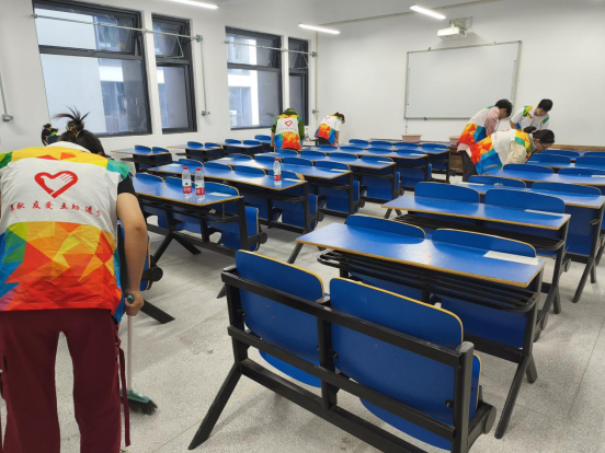 27號下午,志愿服務小隊集合完畢,他們身穿志愿者馬甲,手持清潔工具,精神煥發地開始了志愿服務。他們分工明確,有條不紊地進行教室清掃、清除垃圾,桌椅擦拭擺正。經過幾個小時的辛勤勞動,賽區煥然一新,志愿者的汗水和微笑交織成了一道亮麗的風景線。在清潔過程中,同學們不僅學到了環保知識,也增強了團隊協作能力。