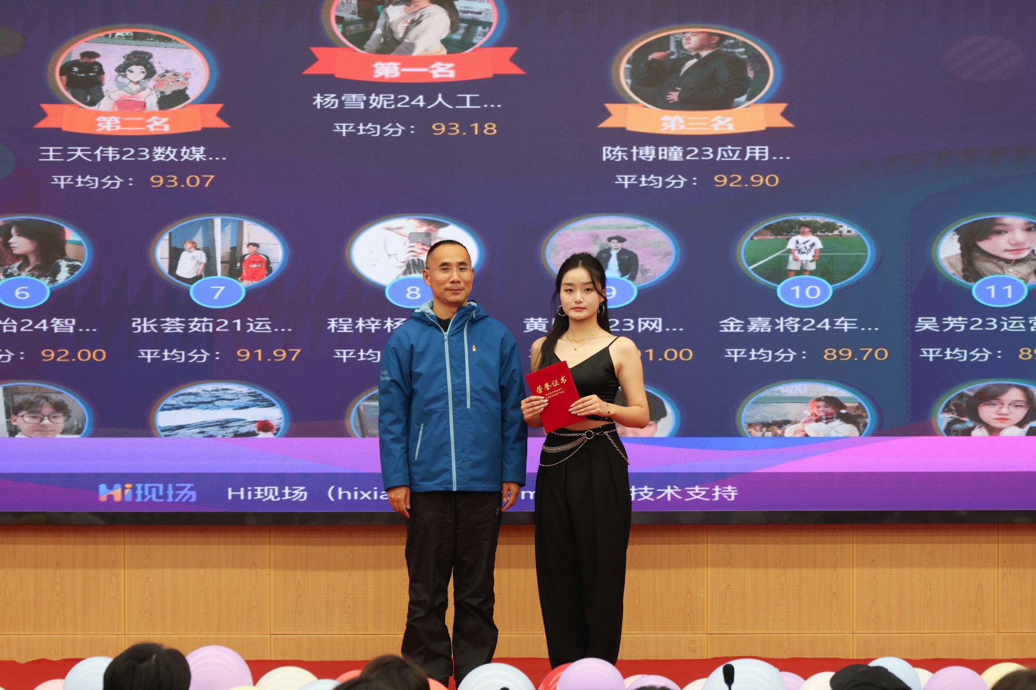 在此次風采大賽中,決出了一、二、三等獎以及人氣獎,分別是24人工智能楊雪妮、23數(shù)媒一班王天偉、23應(yīng)用四班陳博曈、24網(wǎng)絡(luò)一班武墨妍。