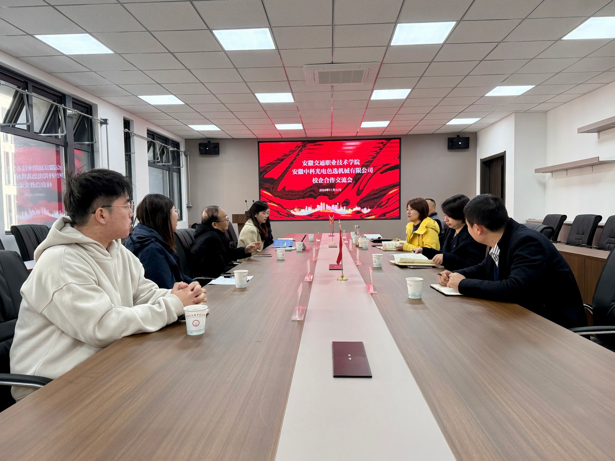 為進(jìn)一步深化校企常態(tài)化合作,豐富職業(yè)教育內(nèi)涵,11月22日上午,安徽中科光電色選機(jī)械有限公司副總經(jīng)理段賢軍、人力資源部部長陳鳳等一行五人赴城信系,洽談雙方深度校企合作相關(guān)事宜。城信系黨總支書記汪倩、主任蘭清群、副書記承友明以及相關(guān)教師出席會議。