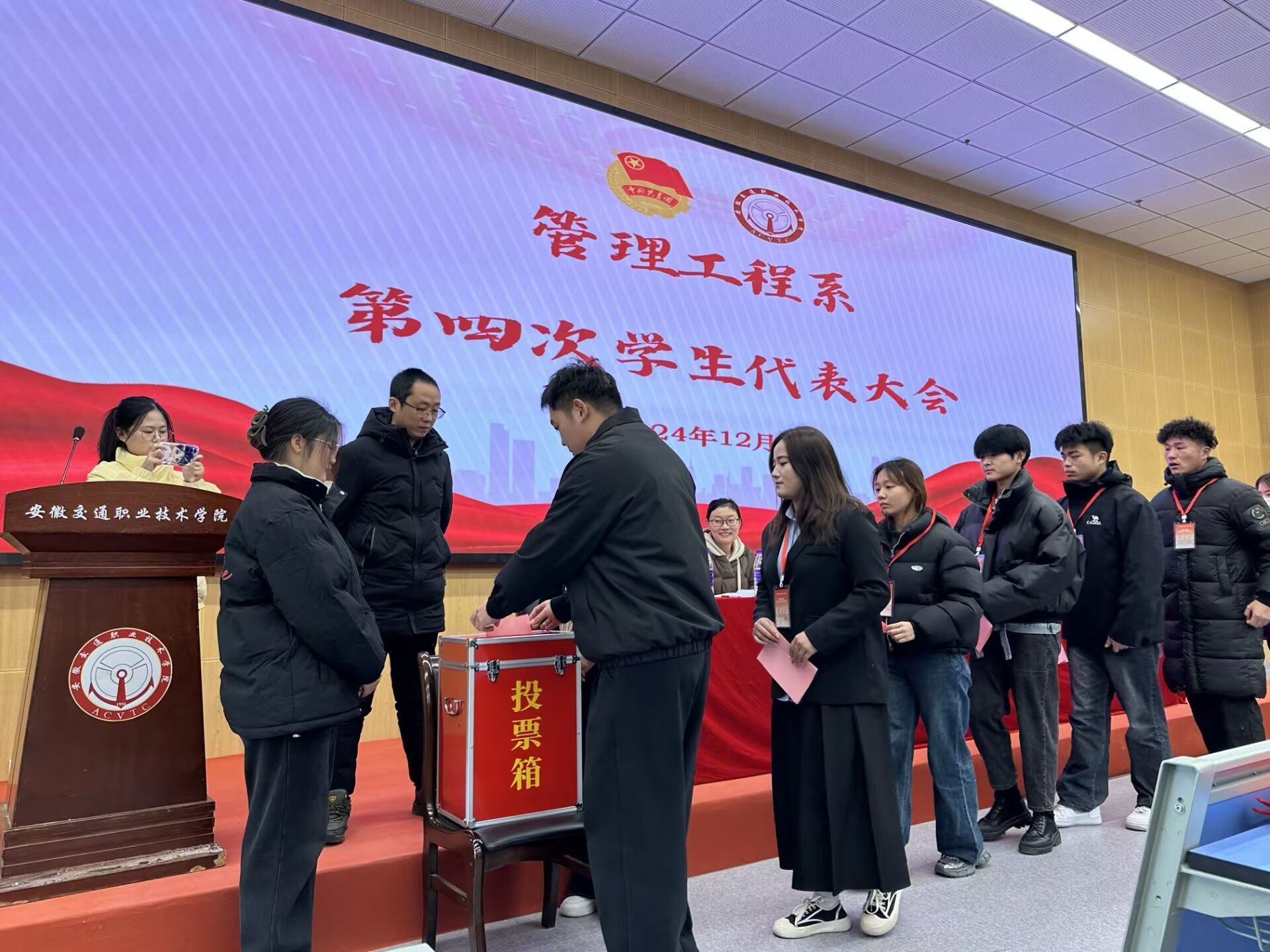 在全體會議中,第二十四屆學生會主席團成員范雨潔向大會做了題為《不忘初心跟黨走,砥礪奮進新征程》的工作報告。大會審議并通過了《安徽交通職業技術學院管理工程系第四次學生代表大會選舉辦法(草案)》《總監票人、監票人、總計票人及計票人名單》。隨后,大會進行第二十五屆學生會主席團成員選舉,正式代表們在監票人的監督下,有序進行投票。