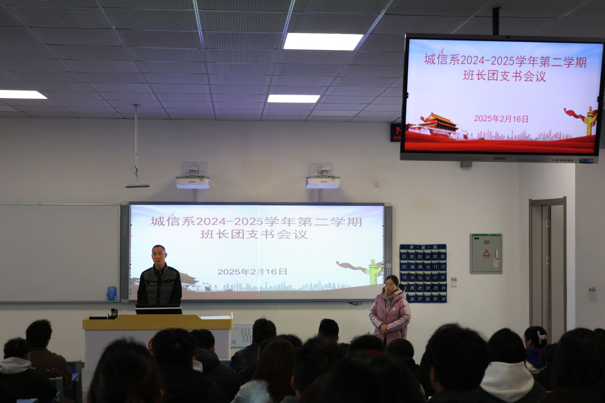 為深化學生安全教育,加強新學期學風建設,2月16日,城信系在學院新橋校區崇德樓A104召開了全系班長、團支書工作例會。會議由系黨總支副書記承友明主持,系主任輔導員汪愛娥、學管老師王意萌以及全系班長、團支書參加了會議。