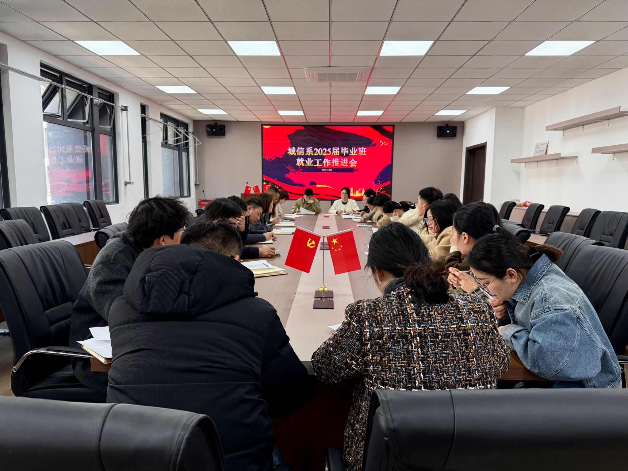 為深入貫徹落實(shí)安徽省高校畢業(yè)生就業(yè)工作部署要求,全面推進(jìn)2025屆畢業(yè)生高質(zhì)量充分就業(yè),3月19日,城信系召開(kāi)2025屆畢業(yè)班就業(yè)工作推進(jìn)會(huì)。會(huì)議由系黨總支書(shū)記汪倩主持,全體畢業(yè)班輔導(dǎo)員參會(huì)。會(huì)議聚焦就業(yè)形勢(shì)分析、責(zé)任落實(shí)與精準(zhǔn)服務(wù),系統(tǒng)部署下一階段就業(yè)工作重點(diǎn)任務(wù)。