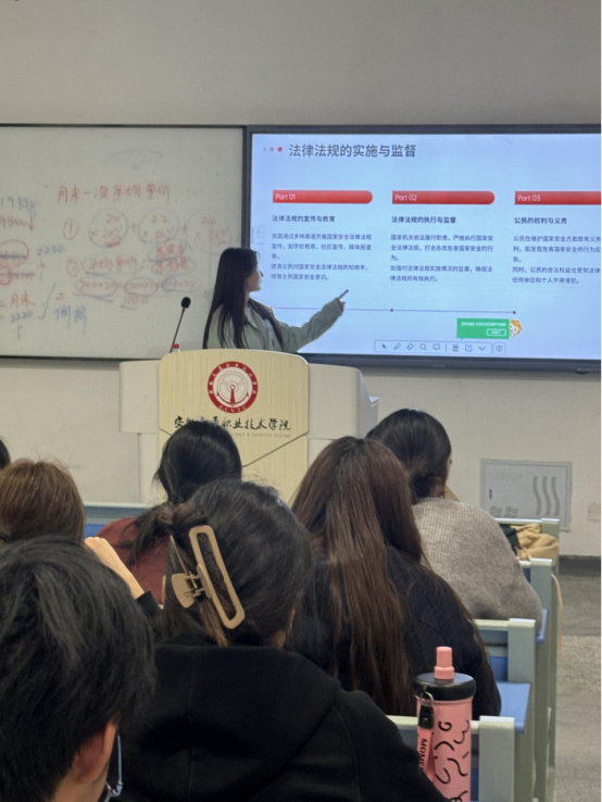 各班級(jí)團(tuán)支部通過播放視頻、案例分析、互動(dòng)交流等形式,幫助同學(xué)們從政治安全到經(jīng)濟(jì)安全,從網(wǎng)絡(luò)安全到生態(tài)安全等不同領(lǐng)域深入了解國家安全的重要性。一個(gè)個(gè)真實(shí)案例極大地觸動(dòng)了同學(xué)們,引發(fā)了他們的熱烈討論以及對維護(hù)國家安全緊迫性的深刻思考。