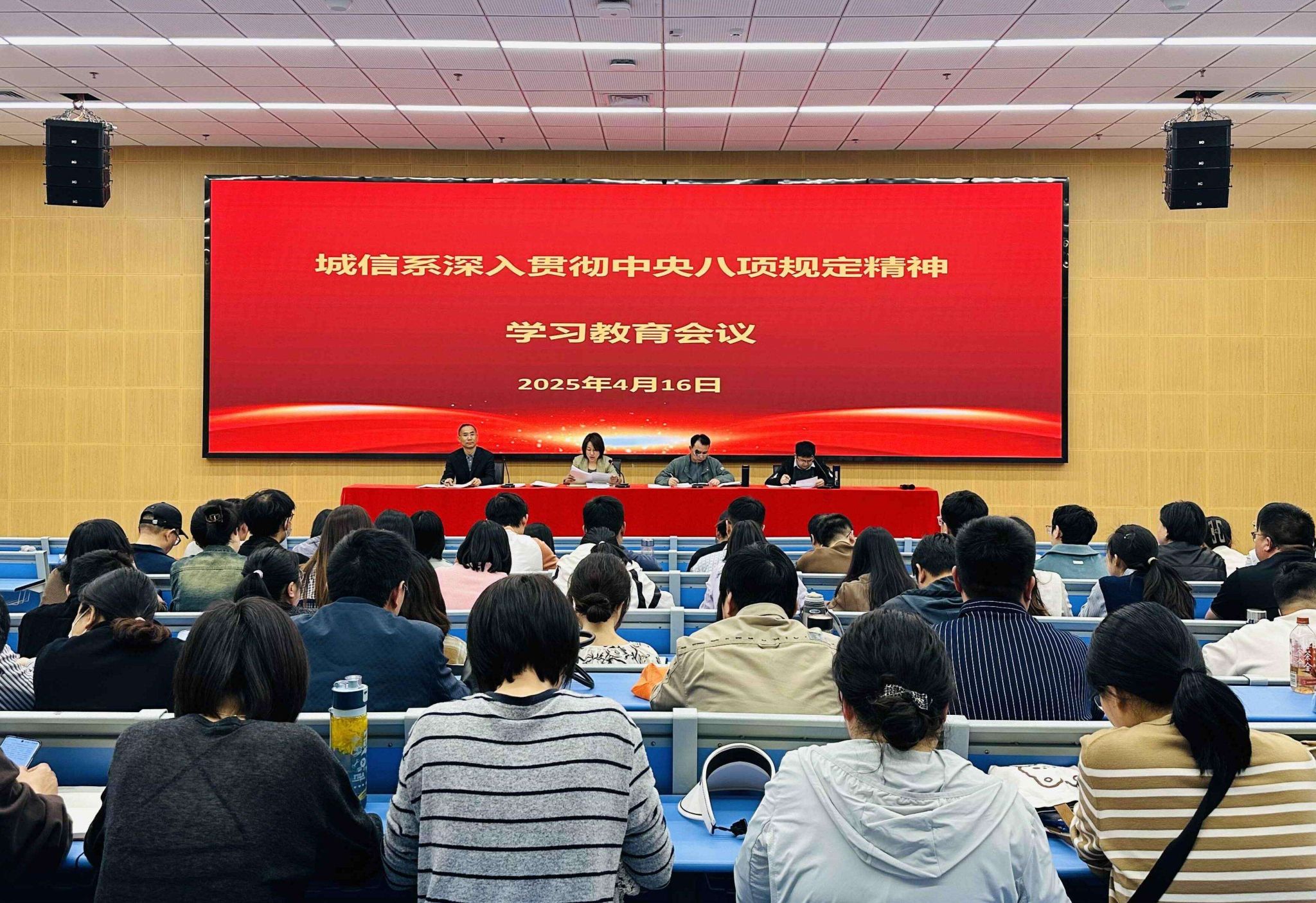 為深入學習貫徹中央八項規定精神,扎實推進全面從嚴治黨,4月16日下午,城信系在學院圖書館四樓會議室召開深入貫徹中央八項規定精神學習教育會議。系領導班子和全體教職工參會,會議由系黨總支書記汪倩主持。