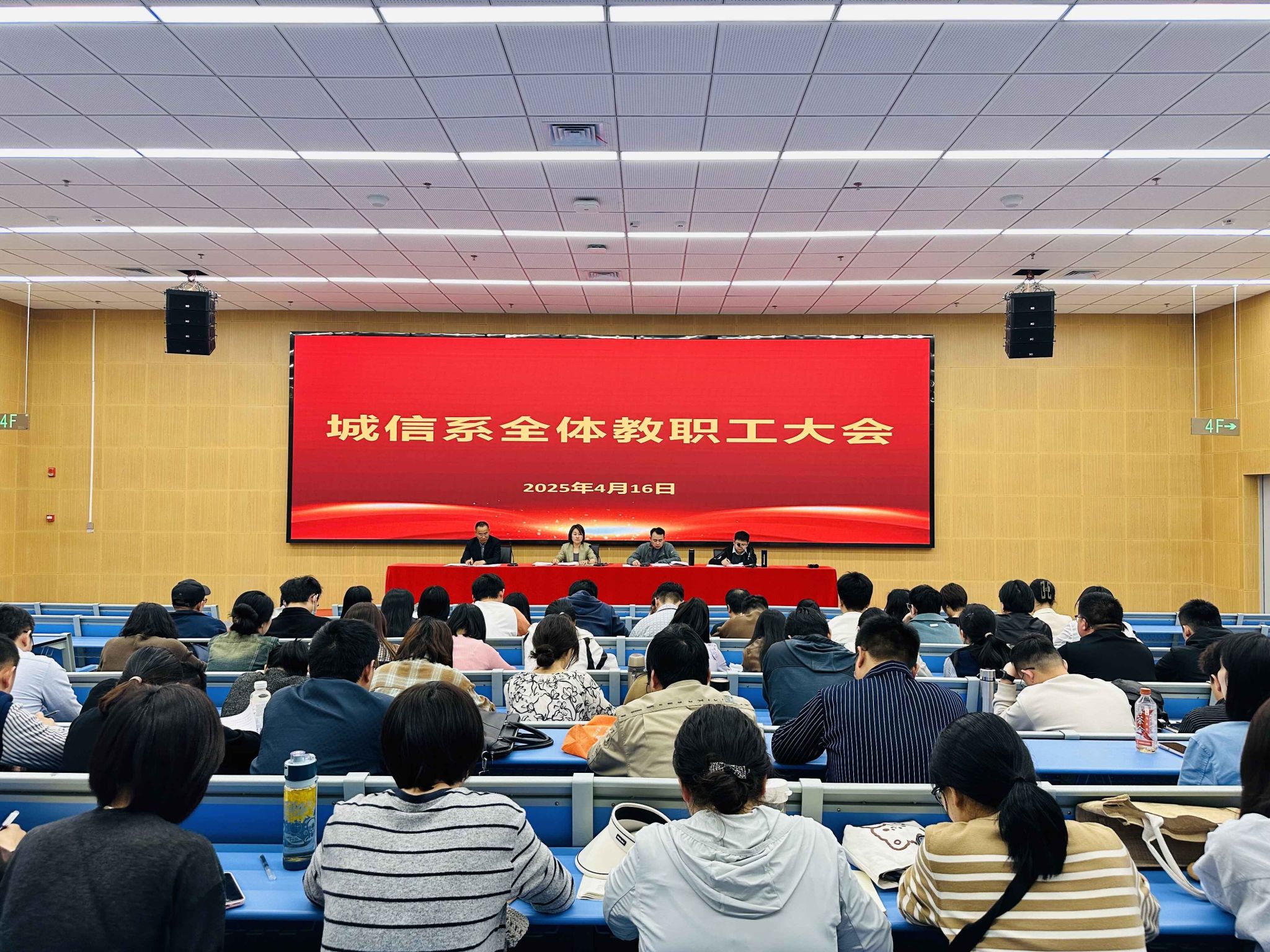 4月16日下午,城信系在圖書館四樓報(bào)告廳召開全體教職工大會(huì),會(huì)議由系黨總支副書記、副主任張峰主持,系領(lǐng)導(dǎo)班子和全體教職工參會(huì)。