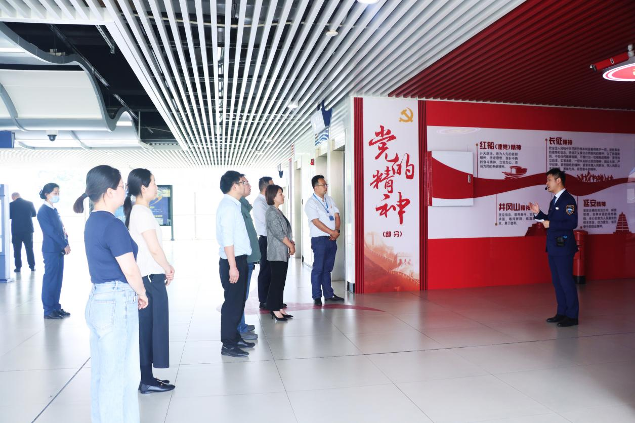 在熱烈的氛圍中,城信系黨總支、蕪湖市運達軌道交通建設運營有限公司第一黨支部簽訂黨建結對共建協(xié)議,推動校企雙方強化黨建共建,引領校企深度融合。會后,全體與會人員前往蕪湖運達軌道交通政務中心站,參觀車站黨建文化長廊,接受紅色教育。汪倩帶領全體黨員重溫入黨誓詞,進一步堅定理想信念。