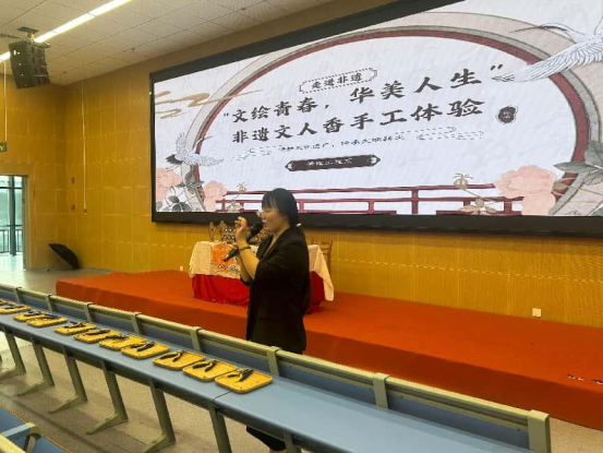 活動現場展示了一系列精美的文人香制品,包括造型別致的香牌、古樸典雅的香爐、精致的香珠耳飾、手串、制作精美的手工香囊、寓意與功效集聚的香梳等,讓同學們感受到非遺傳承人的匠心獨具,讓非遺“香”文化在新時代煥發了新的光彩。