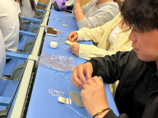 參與體驗的同學分為兩組,一組制作手工香囊,一組制作香珠耳飾。在老師的悉心指導下,制作手工香囊的同學將各種香料按照比例混合研磨、調配,小心翼翼地將混合好的香料裝入精美的香囊袋中,再用五彩絲線一針一線地縫制好,一個個造型獨特、香氣四溢的香包便在同學們的手中誕生了。有的香包上繡著精美的花鳥圖案,寓意著吉祥如意;有的則以簡約的線條勾勒出古樸的韻味,盡顯傳統之美;制作香珠耳飾的同學在老師的帶領下,相互商討香珠選擇和色彩搭配,在“能工巧匠”的巧手下,一對對古典精致、氤氳香氣的耳飾呈現眼前,體現出歲月流轉間的國風之美。