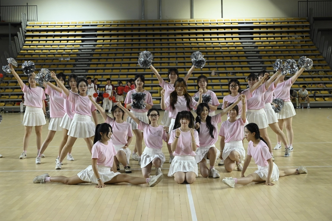 五月萬物并秀,賽場激情涌動。我系參賽隊員們以靈動的舞步和整齊劃一的動作點燃舞臺。旋轉、跳躍、定格,每一個動作都凝聚著數百次訓練的汗水,每一次配合都彰顯著團隊的默契與信任。音樂激昂處,她們如鷹擊長空般舒展身姿;節奏漸緩時,又似飛燕游龍般柔美靈動。舞臺燈光下,隊員們的笑容與汗水交織,用肢體語言詮釋了“力與美”的完美融合,贏得現場觀眾陣陣喝彩。