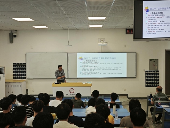 王翼、吳旻和譚坦三位博士分別為學生們帶來了《橋梁工程》《路基路面工程》和《冰雪路面抗滑行為分析及預測研究》的精彩講解。他們結合理論與實際案例,通過多媒體演示等方式,深入淺出地介紹了橋梁工程細節、瀝青路面施工技巧及冰雪路面抗滑研究的前沿知識,引導學生將理論與實踐緊密結合,有效提升了學生的專業實踐能力和學術視野。