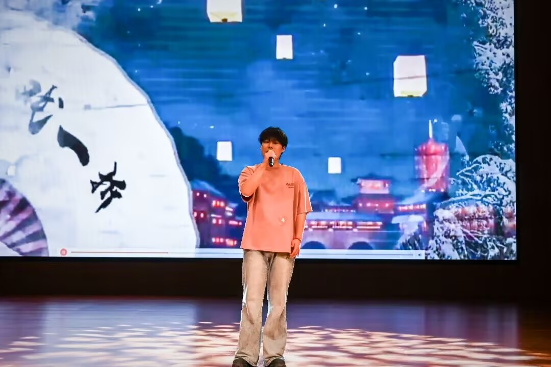 大賽邀請到了三位院系聲樂專業背景的教師——李俠、吳嘉玥、張慧敏老師擔任評委。晚上6點10分,隨著大學生藝術團樂隊一曲充滿活力的《我們的時光》震撼開場,大賽正式開啟帷幕。1號選手胡杰以一曲《聽海》驚艷亮相,瞬間點燃了現場氛圍。隨后,8名選手依次登臺,憑借扎實的演唱功底,完美詮釋了一首首涵蓋青春、奮斗、圓夢以及傳統文化等多元主題的曲目,為在場的每一位觀眾帶來了一場視聽盛宴。