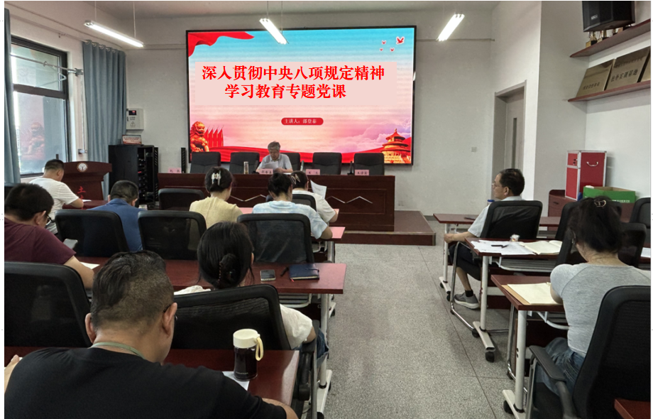 7月1日,土木建筑學院黨總支書記邵登泰圍繞深入貫徹中央八項規定精神學習教育講專題黨課,全體黨員參會。