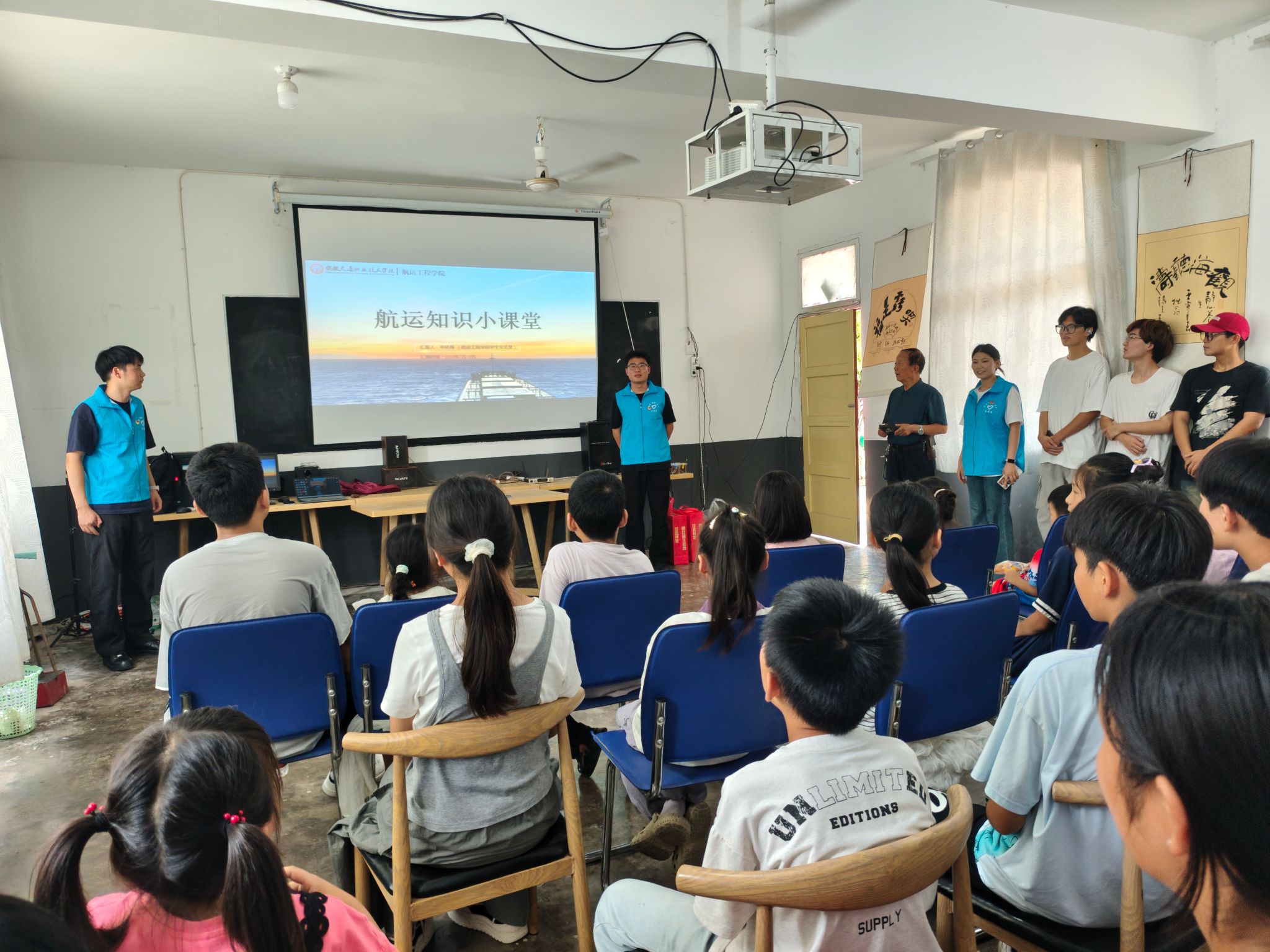 7月16日下午,湯圩村小學的教室內熱鬧非凡,一場別開生面的航運知識小課堂在此拉開帷幕。學院志愿者充分發揮專業優勢,以“航運聯通世界,夢想點亮未來”為主線,通過生動有趣的航海故事、直觀形象的動畫短片,系統講解船舶分類、構造原理及航行奧秘,深入淺出闡釋航運在國民經濟發展、民生保障中的重要作用。孩子們眼中閃爍著好奇的光芒,在互動問答中探索藍色國土的無限可能,一顆顆“航海夢”的種子在鄉村沃土中悄然萌發。
