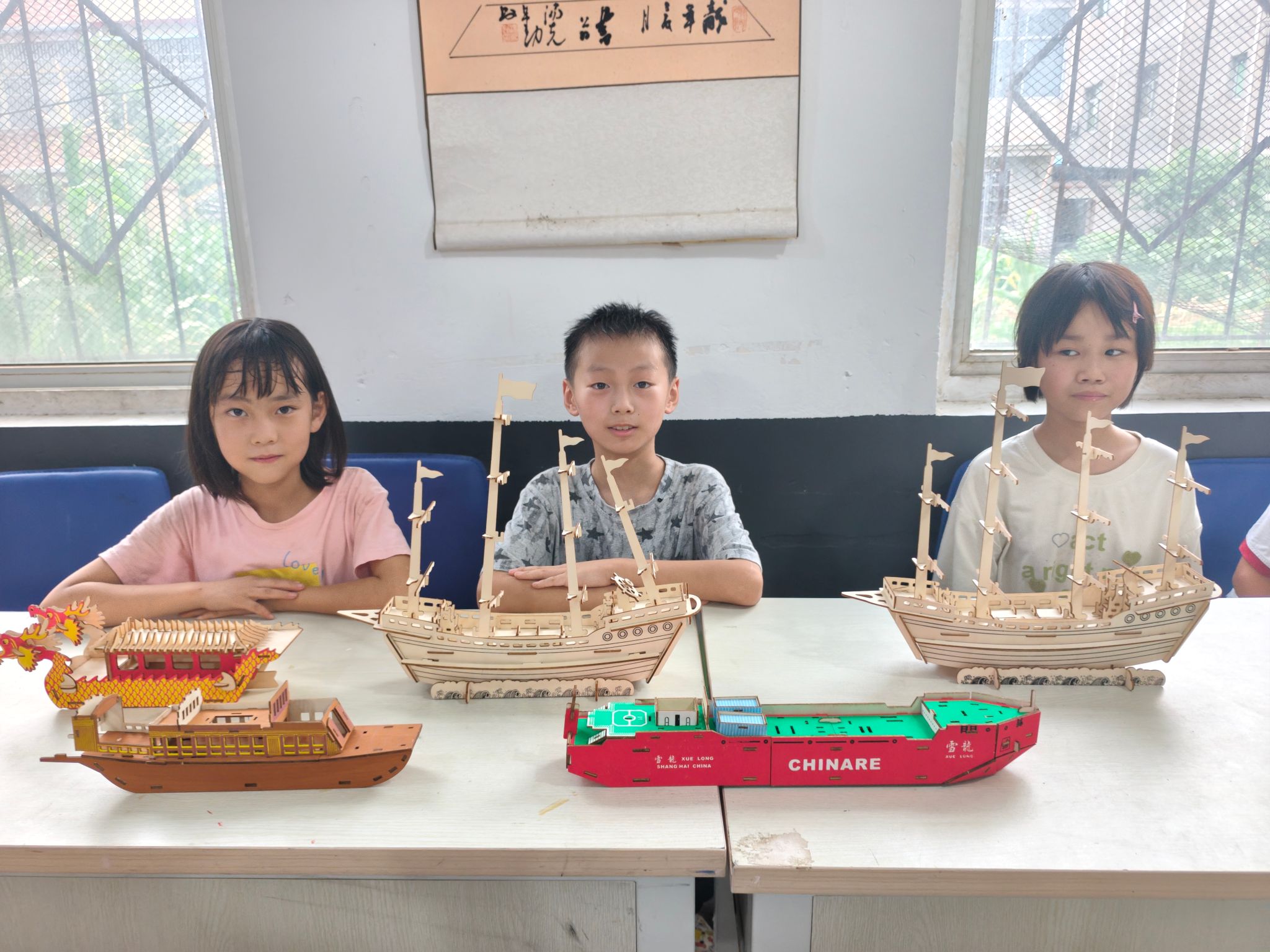 船舶模型制作與游戲體驗活動現場氣氛熱烈,成為當日的“人氣焦點”。志愿者帶領鄉村兒童共同制作南湖紅船、雪龍號破冰船、海軍驅逐艦等具有象征意義的船舶模型,在拼裝、調試的實踐過程中,講解船舶浮力原理與結構力學知識,讓小朋友親身感受科技魅力與工匠精神。模型試航環節中,小小“航海家”們在志愿者指導下操控船只,直觀理解航行規律。隨同開展的投壺、套圈等趣味游戲融入團隊協作理念,孩子們在歡聲笑語中增強了集體榮譽感,實現了“寓教于樂”的育人目標。