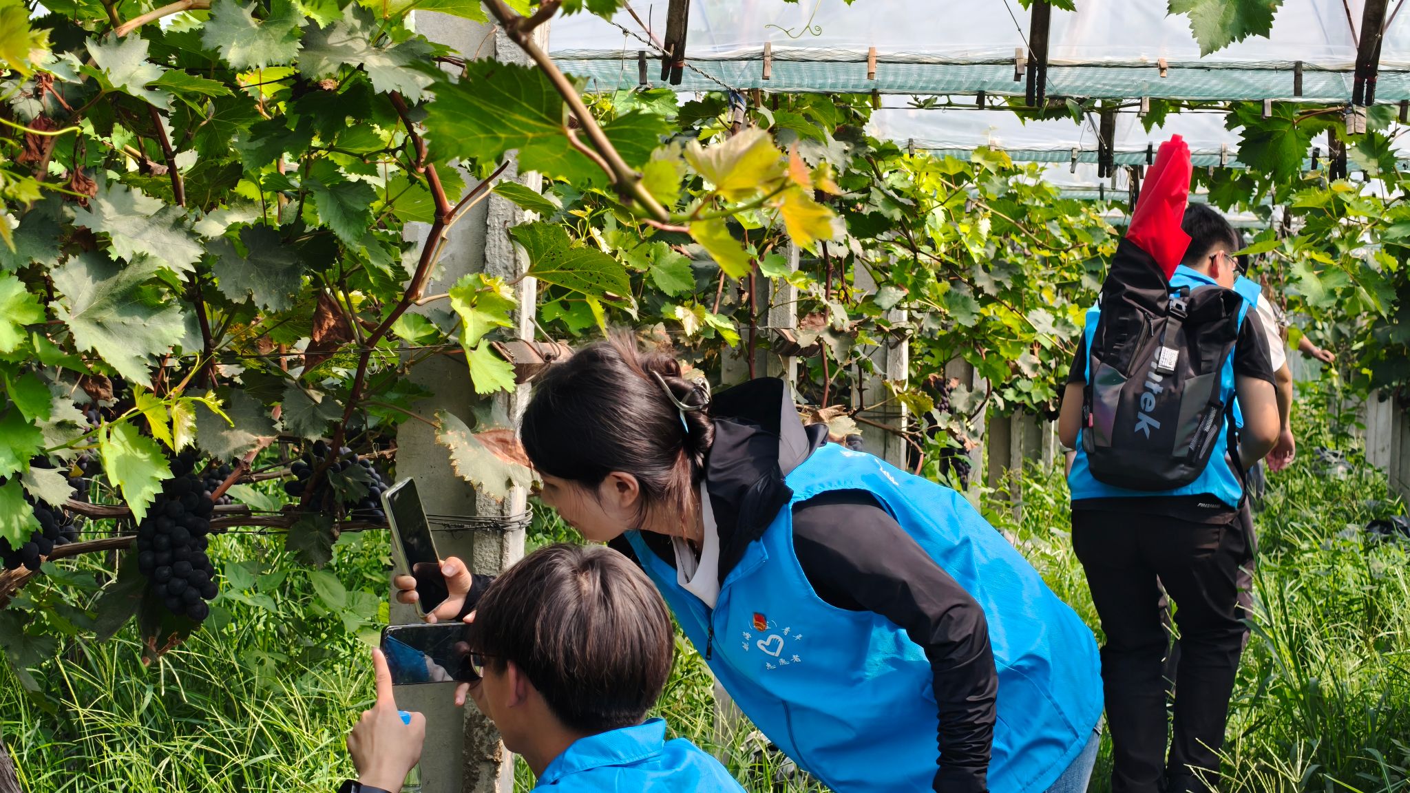 17日上午,團隊走進潁東區名揚現代農業種植基地,開啟“科技賦能農業”研學之旅。在這片擁有800畝葡萄種植園與300畝梨園的現代化基地,同學們與農技人員深入交流智慧農業技術應用經驗,實地察看滴灌系統、生態種植模式等科技成果,親手參與農產品采摘勞作。通過“看、問、學、做”,深刻認識到科技對農業提質增效的關鍵作用,進一步堅定了“扎根大地、服務三農”的責任擔當,為推動產教融合助力鄉村振興積累實踐經驗。