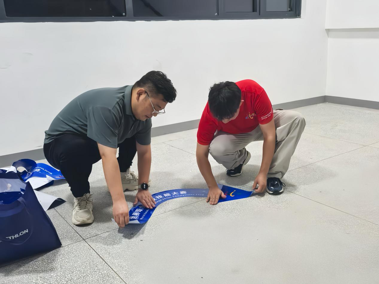 賽前精心謀劃,反復演練筑根基。自接到承辦任務以來,我院迅速成立賽事工作小組,由校院領導牽頭推進籌備,先后召開承辦工作業務啟動會、培訓會、協調推進會,明確分工、提升技能、解決問題,保障各環節高效銜接。隨后聯合專業教師、行政人員及學生志愿者,組建賽場建設、技術保障、后勤服務等專項小組,多次對照大賽規程細化流程——從競賽設備調試校準、賽場安全排查,到參賽手冊印刷、志愿者培訓,每一項工作都力求精準,為賽事筑牢“安全防線”。