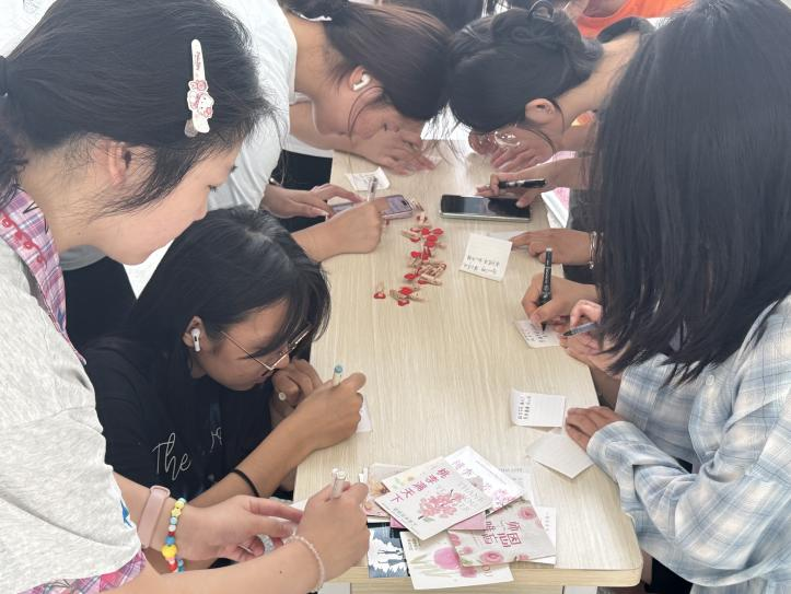 活動當天,文華樓一樓洋溢著濃厚的節日氛圍。院學生會提前準備了教師節主題易拉寶,醒目而溫馨的設計瞬間吸引了師生的目光?,F場安排了專人組織協調,擺放好桌子供同學們使用,同時準備了各色便利貼。同學們紛紛駐足,將對老師的感恩之情、美好祝愿認真書寫在便利貼上,一張張滿載心意的便簽被整齊地張貼在易拉寶上,匯聚成一片溫暖的祝福海洋,成為校園里一道獨特的風景線。