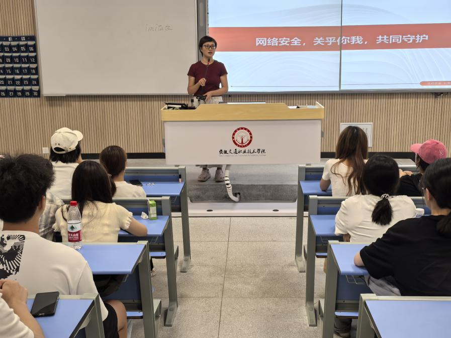 講座結(jié)束后,人工智能應(yīng)用教研室尹然然主任上臺(tái)發(fā)言。尹主任對(duì)兩位專家的精彩分享表示感謝,同時(shí)對(duì)新生提出殷切寄語:希望新生以開學(xué)第一課為起點(diǎn),明確專業(yè)學(xué)習(xí)目標(biāo),既要扎實(shí)掌握網(wǎng)絡(luò)技術(shù)專業(yè)知識(shí),也要時(shí)刻緊繃網(wǎng)絡(luò)安全之弦,積極參與實(shí)踐學(xué)習(xí),提升專業(yè)技能與綜合素養(yǎng),未來成長(zhǎng)為符合行業(yè)需求的高素質(zhì)網(wǎng)絡(luò)技術(shù)人才,為網(wǎng)絡(luò)安全事業(yè)發(fā)展貢獻(xiàn)力量。