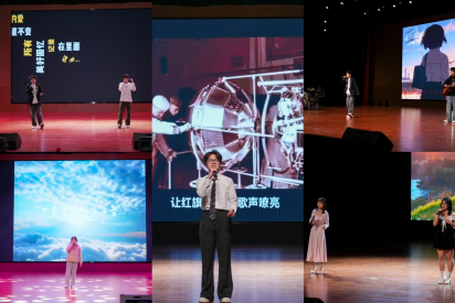 師生同心,溫情滿溢。4位老師與2位同學攜手帶來朗誦《月光下的中國》,以真摯的情感、深情的訴說,勾勒出祖國的壯美與溫柔,喚起全場師生的家國情懷。