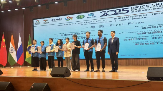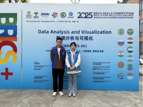 2025年11月2日至6日,2025金磚國家職業技能大賽數據分析與可視化賽項國際總決賽在廣東建設職業技術學院成功舉辦。大賽匯聚了來自中國、俄羅斯、印度、南非、新加坡等多個國家的職業院校技能高手同臺競技。經過激烈角逐,我校代表隊憑借扎實的專業功底和出色的現場發揮,最終榮獲全國一等獎。