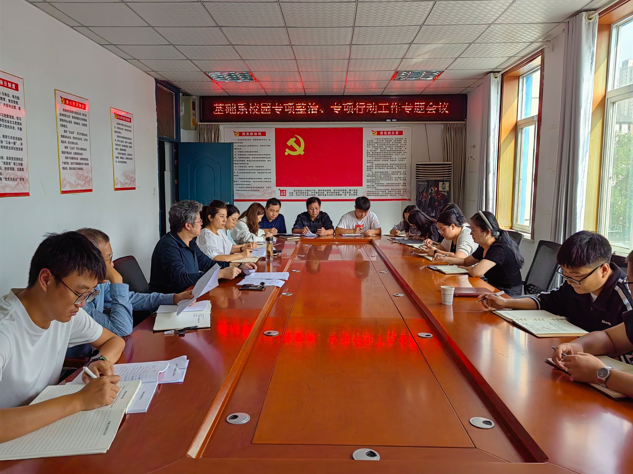 9月27日下午,基礎系召開第五次校園專項整治、專項行動工作會議,系黨總支書記邵登泰主持會議,全體教職工參加。
