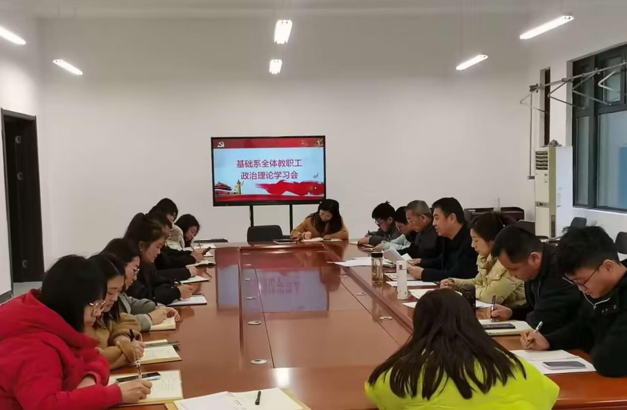 3月14日下午,基礎系召開全體教職工政治理論學習會,系主任楊柳青主持會議,全體教職工參加。