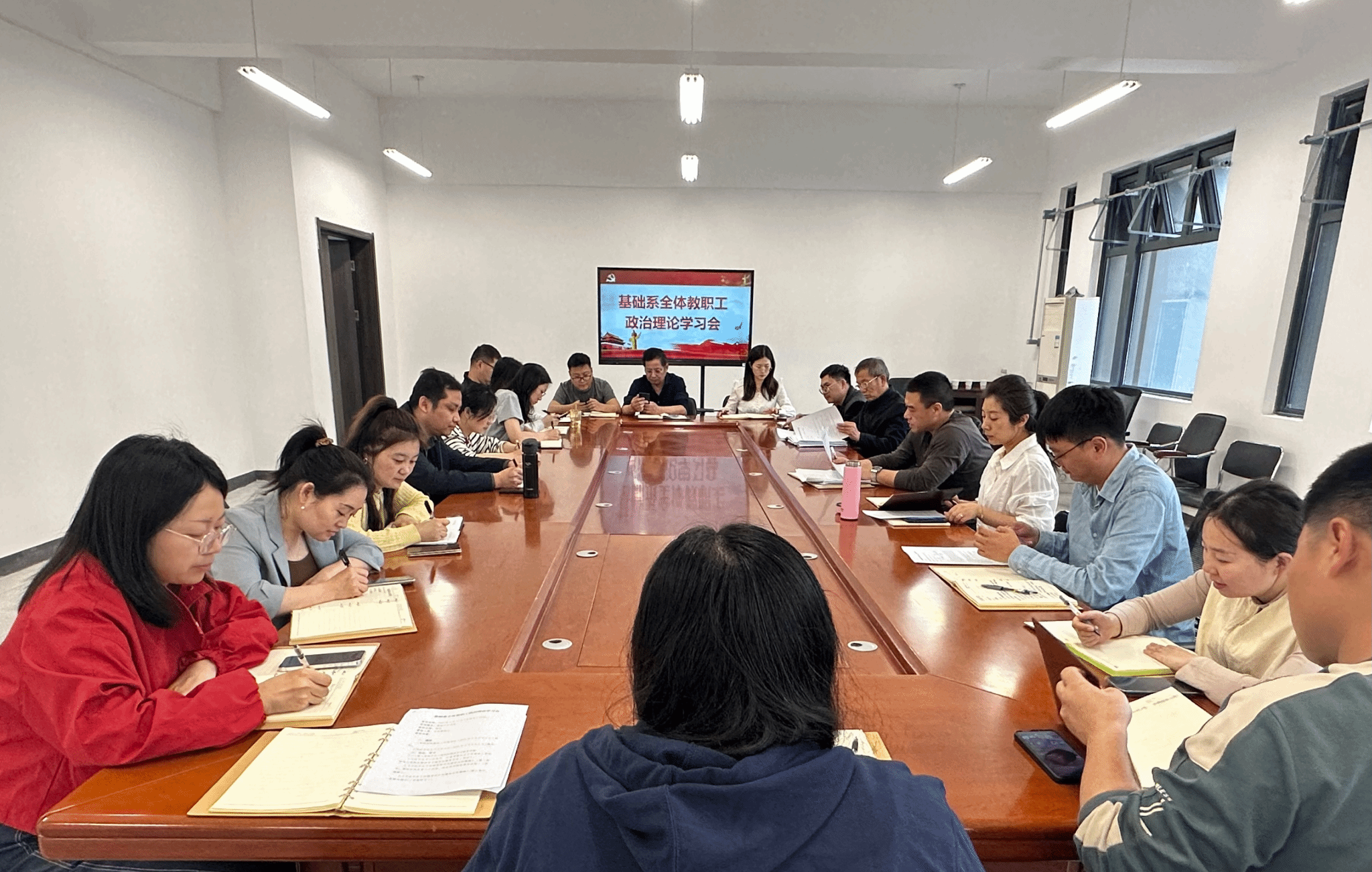 4月11日下午,基礎系召開全體教職工政治理論學習會,系黨總支書記胡冰主持會議,全體教職工參加。