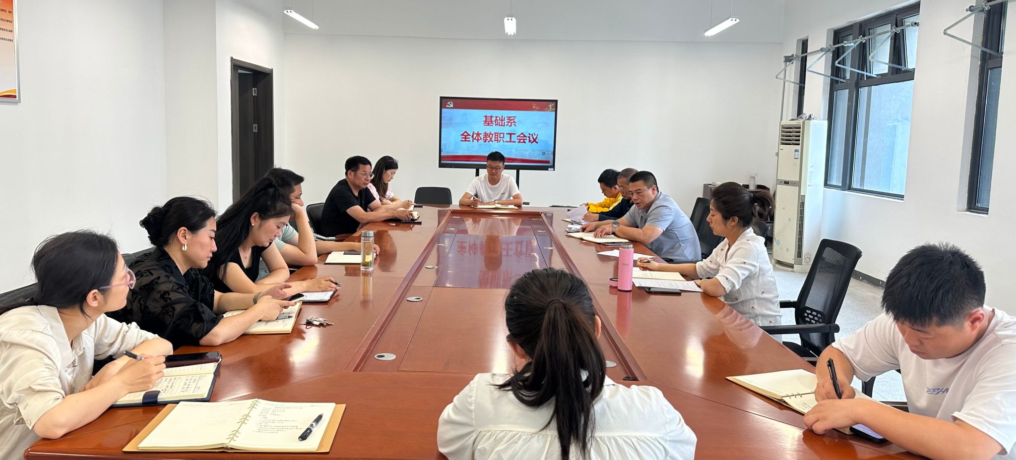 5月27日下午,基礎系召開全體教職工政治理論學習會,系黨總支書記胡冰主持會議,全體教職工參加。