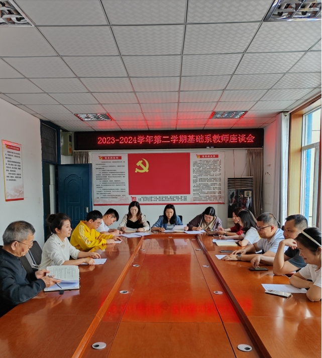 同日下午召開基礎系教師座談會,多位教師就本系教學管理、學生管理方面,獻計獻策,進行深層次溝通交流,為進一步加強課堂建設提供了良好的基礎。許在庫在會上提出要求三點:一是強化思想教育;二是加強課堂紀律管理;三是嚴格教學紀律。