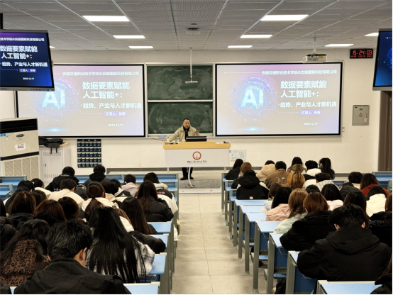 12月17日,圖聯(lián)科技有限公司工程師張春應(yīng)邀為我校2024級(jí)、2025級(jí)大數(shù)據(jù)專業(yè)學(xué)生開展了“數(shù)據(jù)要素賦能人工智能+”專題講座,學(xué)院副書記、副院長(zhǎng)(主持)張峰、大數(shù)據(jù)專業(yè)負(fù)責(zé)人出席參加。講座圍繞大數(shù)據(jù)專業(yè)前景、數(shù)據(jù)產(chǎn)業(yè)價(jià)值鏈及人工智能時(shí)代下的職業(yè)發(fā)展路徑展開深入分享。