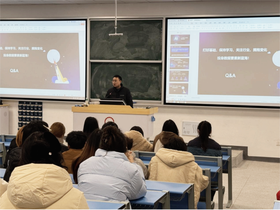 針對(duì)大數(shù)據(jù)專業(yè)學(xué)生,張春特別介紹了圖聯(lián)科技在財(cái)經(jīng)、智慧工業(yè)等垂直領(lǐng)域的數(shù)據(jù)標(biāo)注與AI訓(xùn)練數(shù)據(jù)服務(wù)業(yè)務(wù),并與學(xué)生就業(yè)方向緊密結(jié)合。他鼓勵(lì)學(xué)生在校期間夯實(shí)數(shù)據(jù)處理基礎(chǔ),積極學(xué)習(xí)AI相關(guān)知識(shí),關(guān)注行業(yè)動(dòng)態(tài),提前規(guī)劃職業(yè)生涯。