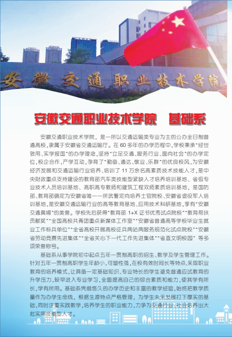 安徽交通職業技術學院五年一貫制高職招生簡章