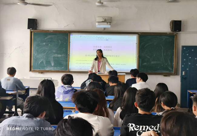 活動期間,各班級召開了“青春無煙更亮麗”主題班會,對學生開展吸煙有害健康的教育,引導學生自覺遠離煙草。有的班級開展了主題交流,展開討論,21路2班徐喜慶同學說:“吸煙存在潛在安全隱患,眾多火災的罪魁禍首都是出自一個不起眼的煙頭。我們應共同投入到戒煙的活動中,共同維護好宿舍及校園的環境。”有的班級自發組織簽寫禁煙承諾書,共同創建無煙校園環境。