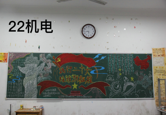 同學們積極動腦動手,選取板報內容,設計板報格局,精心繪制。黑板報緊扣活動主題,內容豐富,融入了航天夢、交通夢、復興夢等元素,一份份作品飽含學生們對黨和國家的無限熱愛與美好祝福。