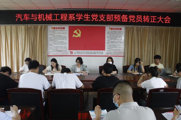 為進一步推進黨員隊伍建設,6月7日下午,汽車與機械工程系學生黨支部在南教三樓會議室召開預備黨員轉正大會,討論程長暐等5名預備黨員的轉正事宜。會議由學生黨支部書記鐘飛飛主持,支部全體黨員參加本次會議。