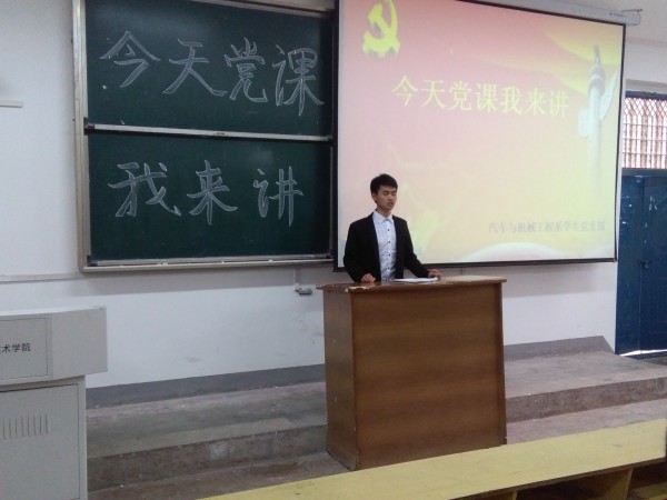 5月18日下午,汽車與機械工程系學生黨支部于西階101教室舉辦了“今天黨課我來講”活動,來自系不同年級、不同專業的入黨積極分子、預備黨員以及思想要求積極進步申請入黨的優秀學生參加了本次活動。