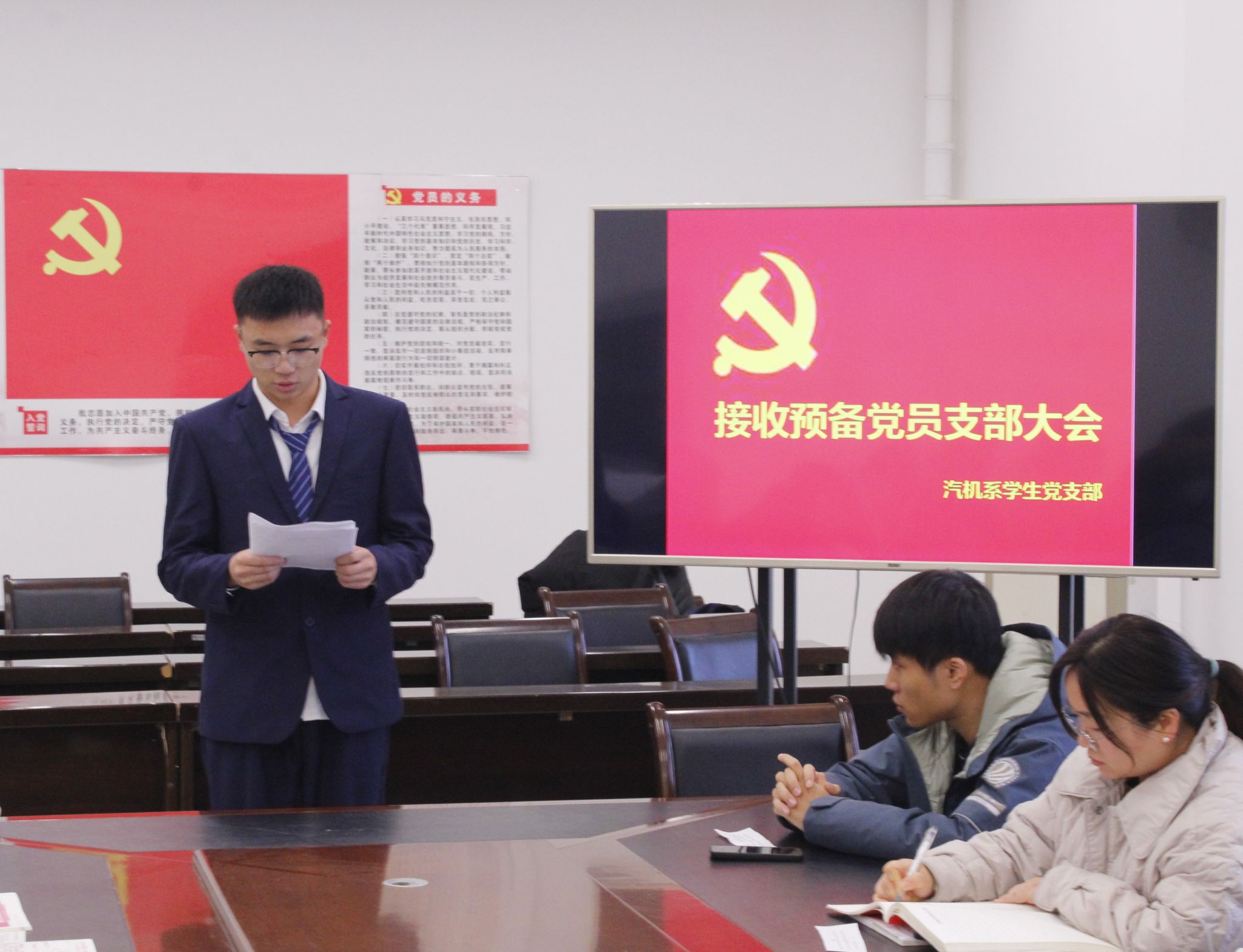 為做好黨員發(fā)展工作,加強(qiáng)黨的基層組織建設(shè),凝聚新力量,11月25日上午,汽車與機(jī)械工程系學(xué)生黨支部在致遠(yuǎn)樓A409會(huì)議室召開預(yù)備黨員接收大會(huì)。汽車與機(jī)械工程系學(xué)生黨支部全體黨員、發(fā)展對(duì)象參加會(huì)議,會(huì)議由黨支部書記鐘飛飛主持。