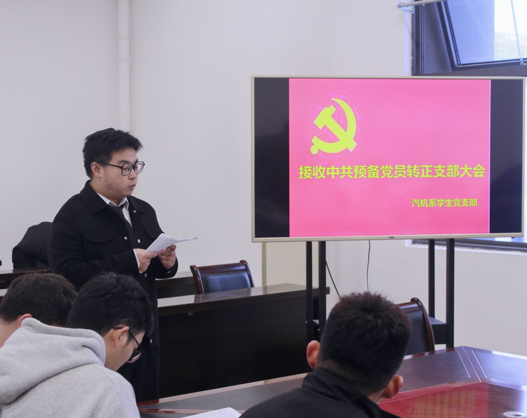 11月25日,汽車與機械工程系學生黨支部召開預備黨員轉正會議,本次會議圍繞劉梓安同志的預備黨員轉正申請展開深入討論與審議。會議由黨支部書記鐘飛飛主持,支部全體黨員參加。