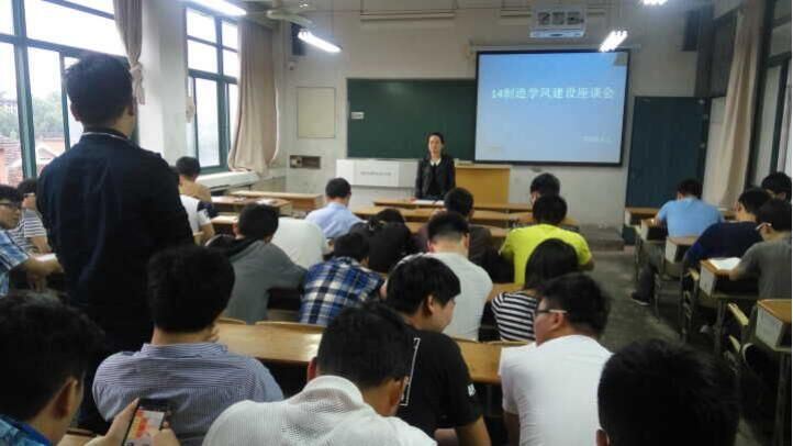 學風是學生思想道德品質、學習精神與綜合素質的重要體現,是學生成長的基礎和前提,是凝聚在教與學過程中的精神動力、態度作風、方法措施,也是學生健康成長的基石。本次班會的目的在于調動同學們自主學習的積極性,提高自律意識,進一步端正學習態度,濃厚班級學習氛圍,塑造優良的班風學風。在各班輔導員老師的帶領下,班級學風建設迅速展開熱烈的討論,15機電班的班委們分別從思想、學習、生活以及班級活動等方面對各項工作進行了總結,指出了存在的問題和不足,做了自我檢討,并提出了后期班級學風建設、制度建設等方面的意見和建議。14電子班則針對如何端正自身學習態度,提高學習主動性進行了自由討論,班級同學共同參與班級學風建設。其中,吉莉同學在班會上說到,“在學校已經生活學習了近兩年,對于即將就業的我們,我們更要清楚的看到自己的責任,珍惜時光,提高自身素質能力,以便更好面臨就業,不要等到畢業后,發現自己什么沒學到,后悔都來不及”。