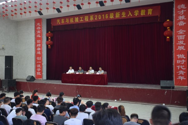 秋意漸濃,在這豐收的季節里,汽車與機械工程系迎來了大家庭的新成員。為了讓新生更好的了解學校,了解各自的專業,依照我系迎新工作計劃的安排,9月14日下午我系在南區大禮堂對剛剛入學的新生進行了專業介紹的入學教育。系黨總支副書記(主持工作)李家林、各專業教研室老師以及新生班輔導員等參加了會議。